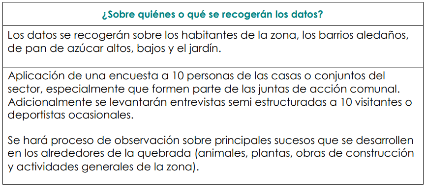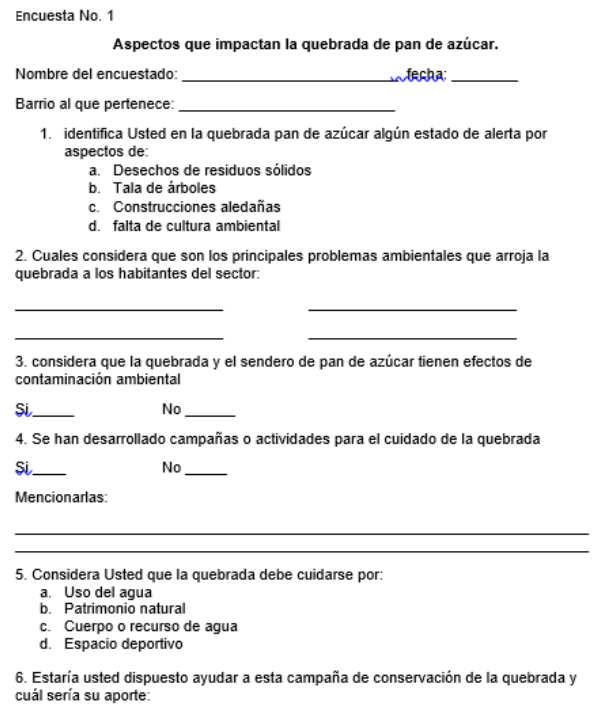 Ubicación: Quebrada de pan de azúcar y los barrios aledaños del sector. Comuna No. 12 población 270 habitantes aproximadamente.